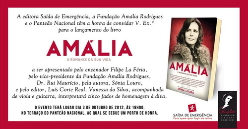 A pedido da editora Saída de Emergência, com quem temos uma parceira, divulgamos aqui no blog Predadores da Noite uma das maiores apostas para este ano em termos literários: O lançamento do livro Amália – O Romance da Sua Vida. O devido lançamento terá lugar no dia 3 de Outubro, por volta das 18:00, no Panteão Nacional.